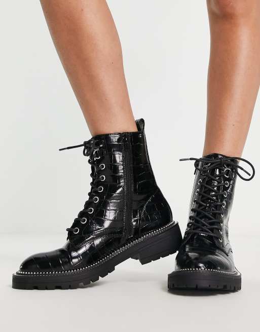 River Island croc effect lace up boots in black ASOS Very well made.