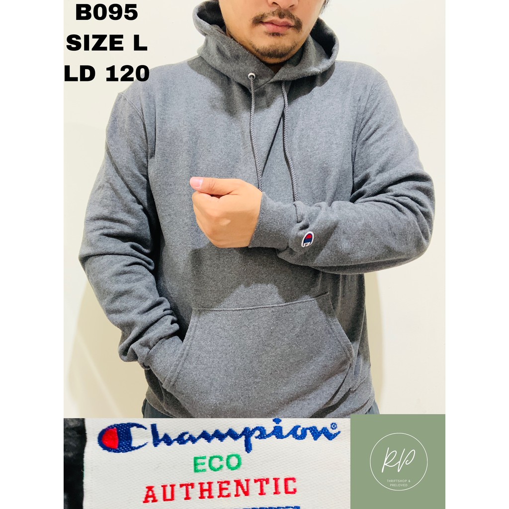 PULLOVER HOODIE JAKET CHAMPION ECO HEATHER AUTHENTIC ORIGINAL THRIFT PRELOVED SIZE L LD 120 B095 Very well made.