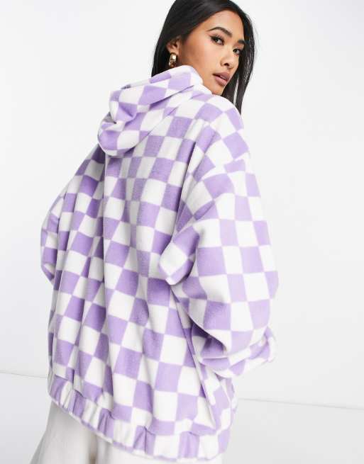 ASOS DESIGN hoodie in checkerboard fleece in lilac Very well made.