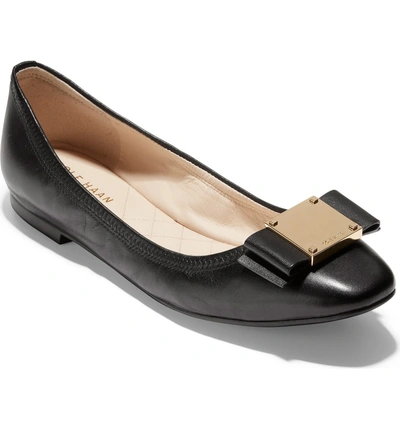 Cole Haan Tali Modern Grand Bow Ballet Flats In Black Leather Very well made.