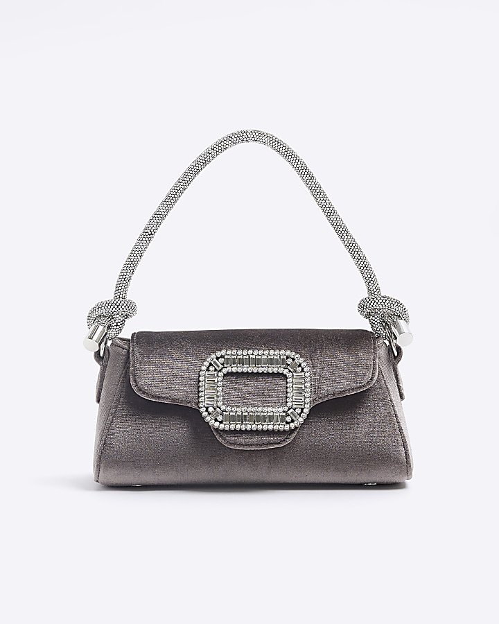 Grey velvet embellished clutch bag Very well made.