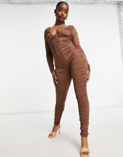 Shop Ruched Mesh V Bar Jumpsuit online Debenhams Kuwait Very well made.