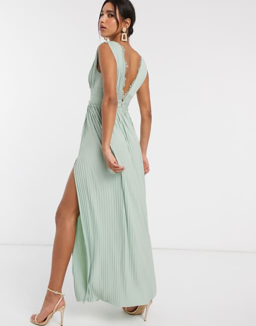 ASOS DESIGN Premium Lace Insert Pleated Maxi Dress in sage green Very well made.