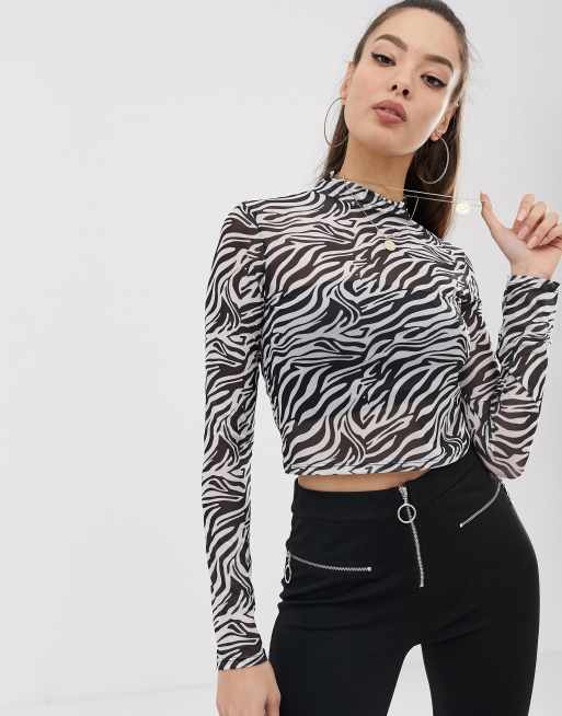 ASOS DESIGN high neck top in zebra print sheer mesh with long sleeve Very well made.
