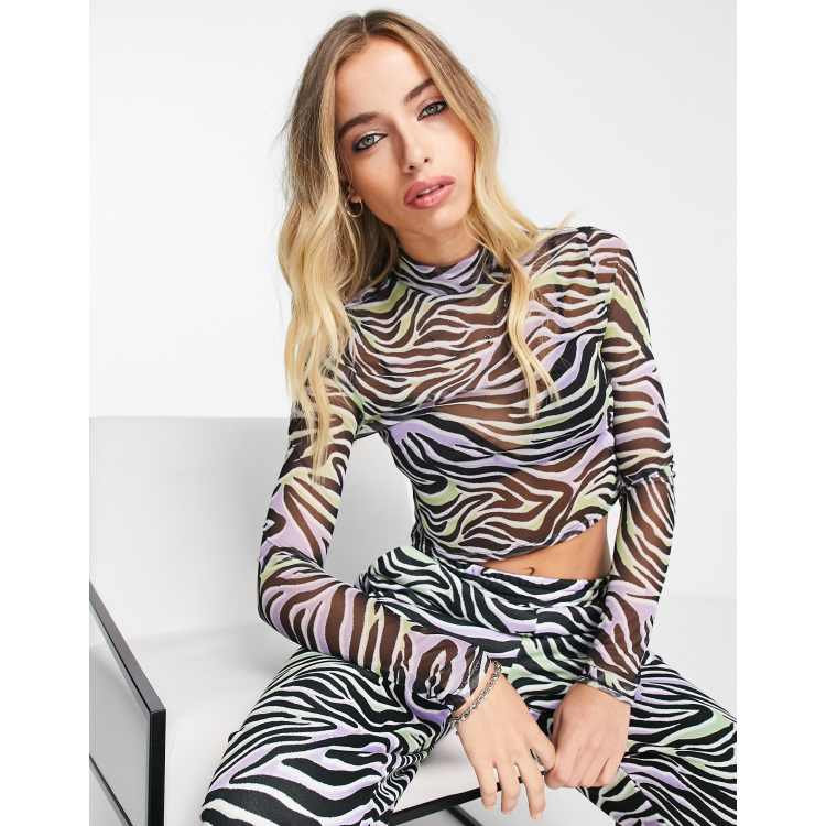 ASOS DESIGN mesh long sleeve top co ord in zebra print Very well made.