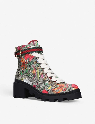 Gucci Trip Gg Floral Gg Supreme Combat Boot In Blk beige ModeSens Very well made.