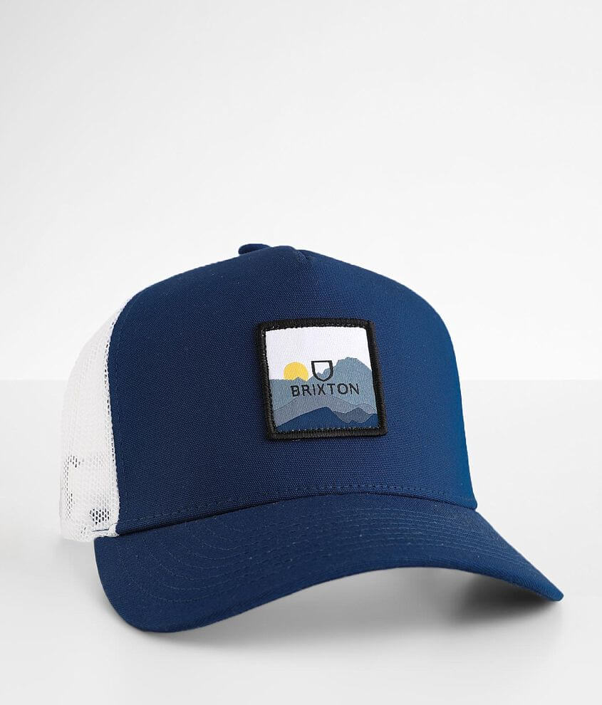 Brixton Alpha Block Trucker Hat Men s Hats in Mountain Blue Buckle Very well made.