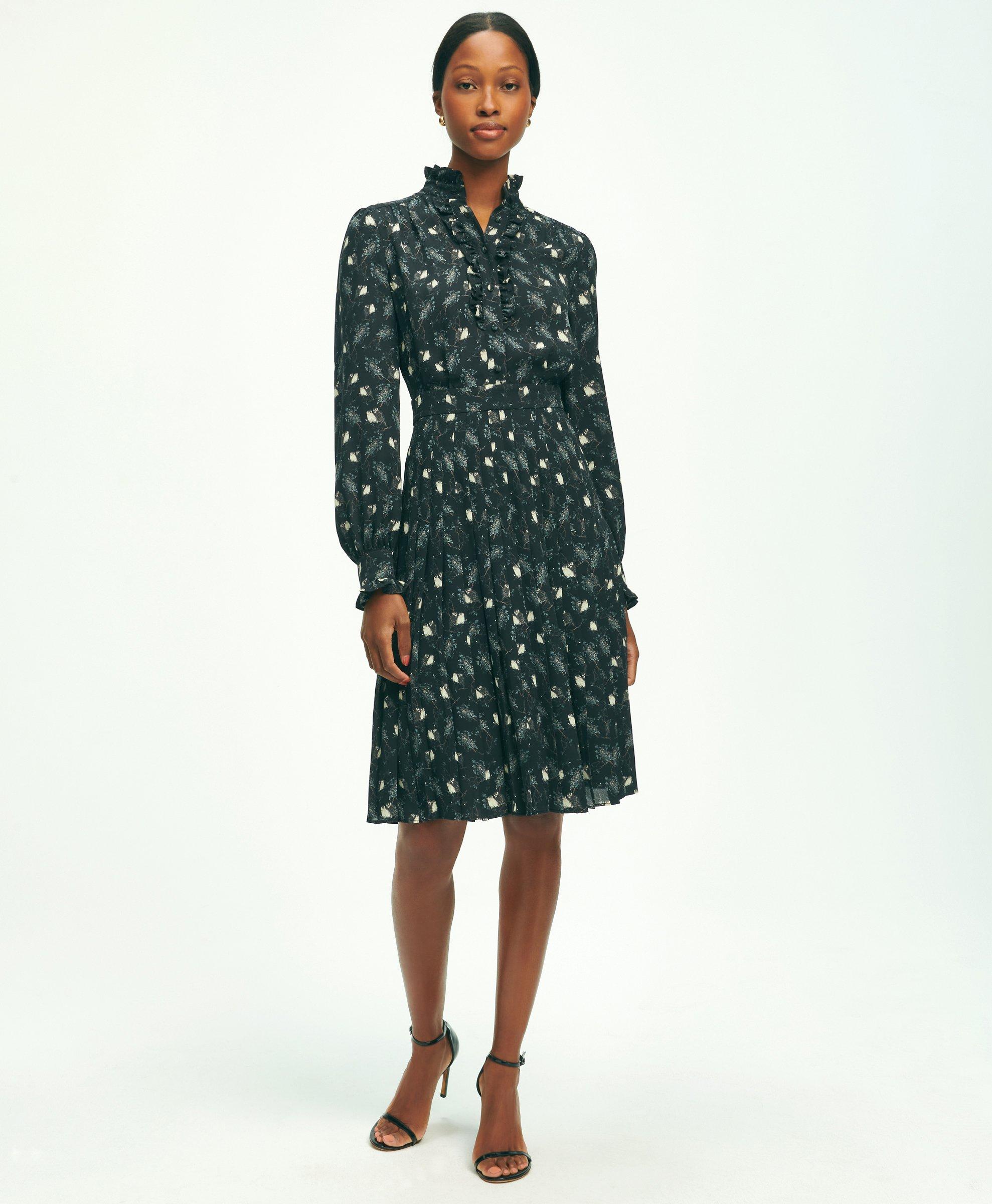 Crepe Owl Print Shirt Dress Very well made.