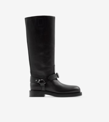 Leather Saddle High Boots in Black Men Burberry Official Very well made.