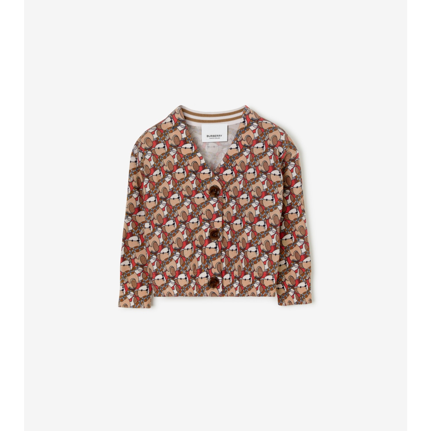 Thomas Bear Print Cotton Cardigan in Scarlet Orange Burberry Very well made.