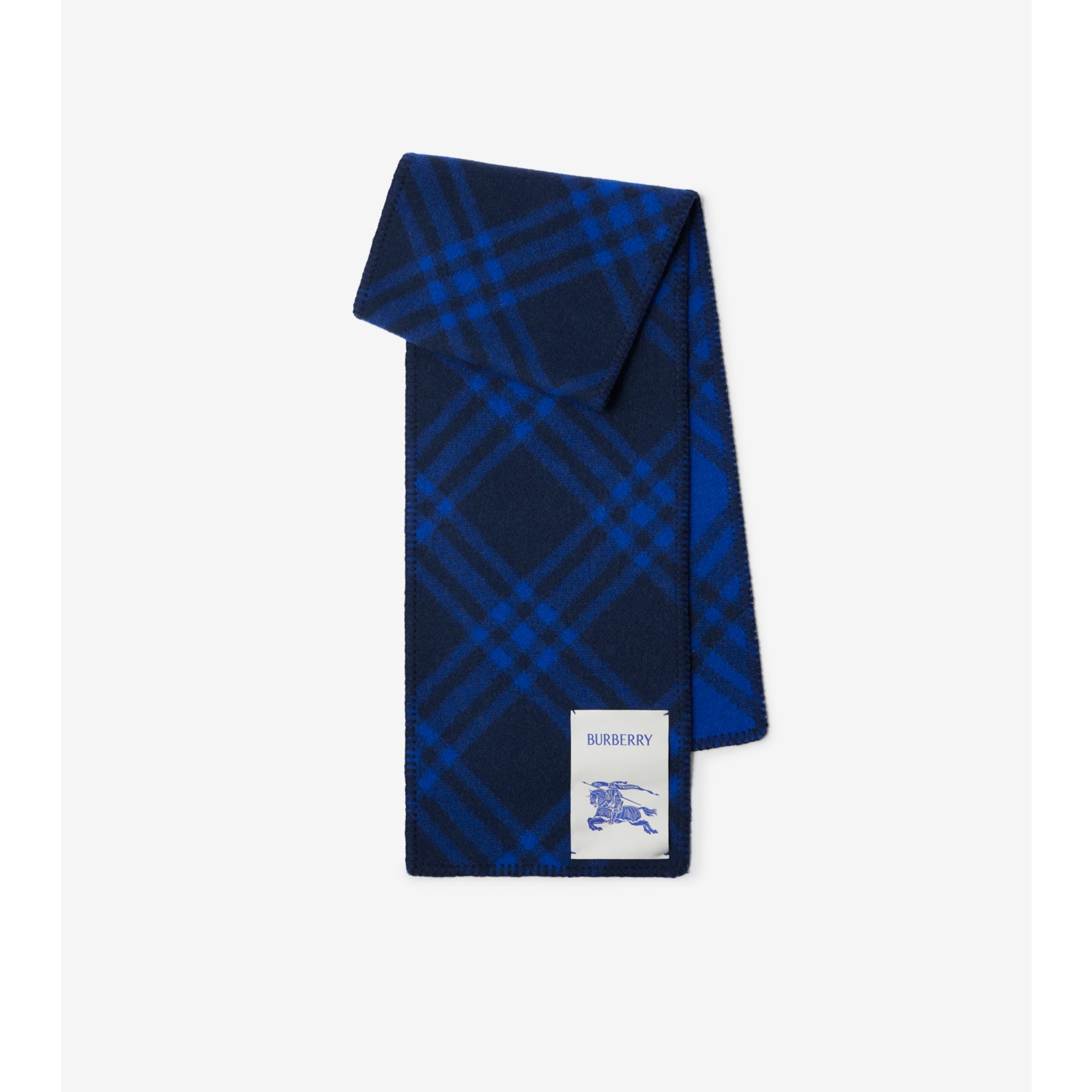 Check Wool Scarf in Navy Men Burberry Official Very well made.