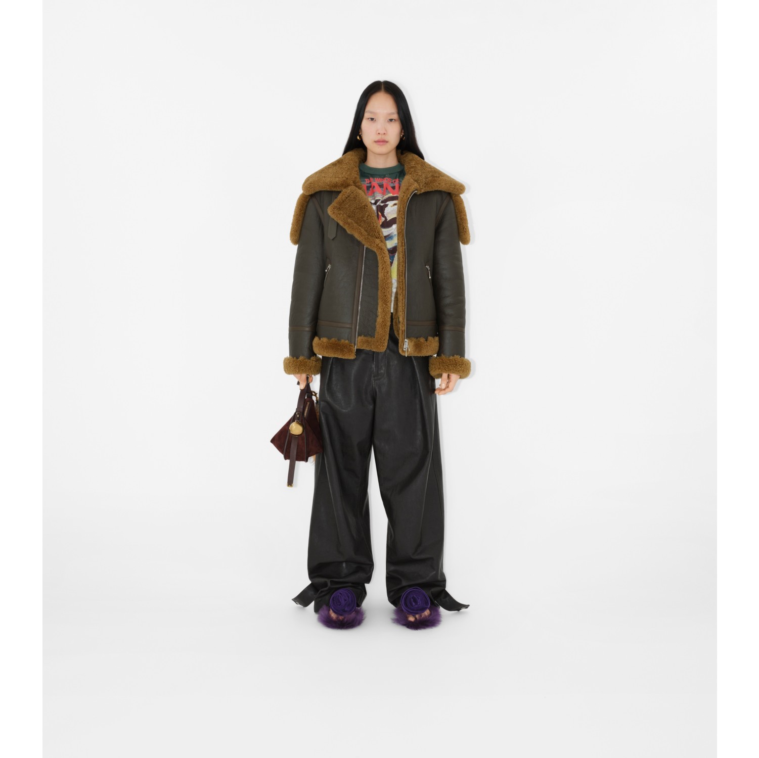 Shearling Aviator Jacket in Otter Burberry Official Very well made.