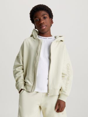 Calvin Klein Jeans Beige Logo Cotton Hoodie Childrensalon Outlet Very well made.