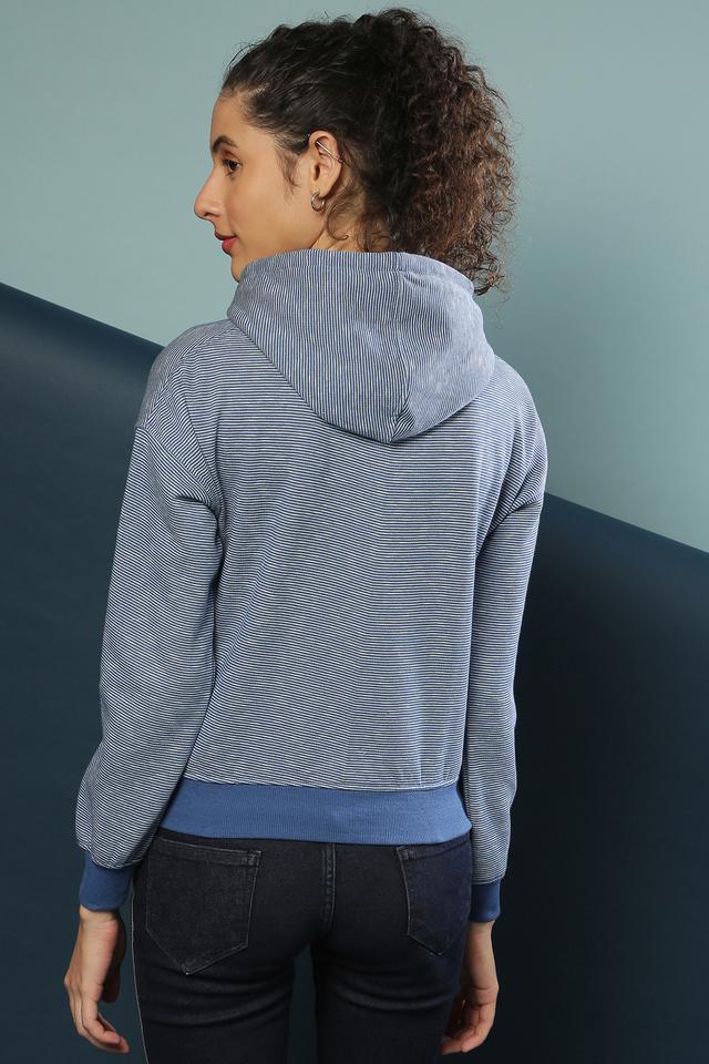 Buy CAMPUS SUTRA Royal Blue Stripes Cotton Hood Womens Sweatshirt Very well made.
