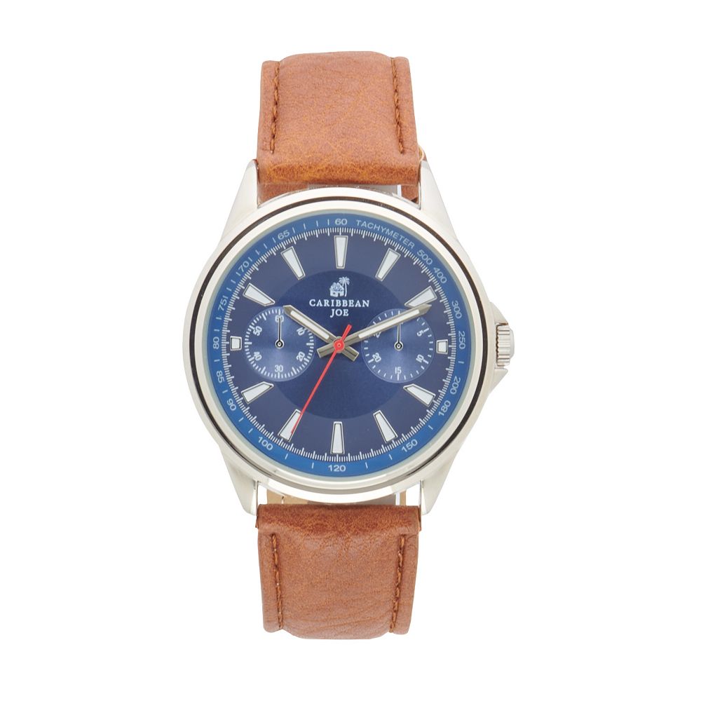 Caribbean Joe Men s Silver Tone Brown Strap Watch CJ7108SL Very well made.
