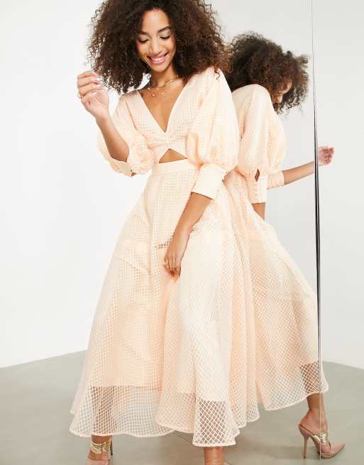 ASOS EDITION blouson sleeve midi dress in organza check in soft Very well made.