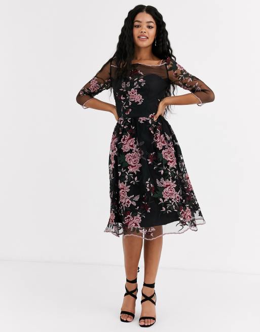 Chi Chi London mesh embroidered midi dress in multi Very well made.