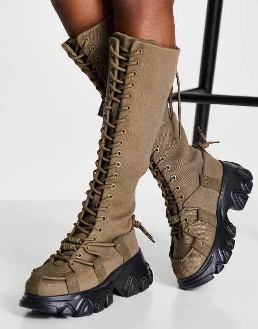 ASOS DESIGN Crafty chunky canvas lace up boots in khaki ASOS Very well made.