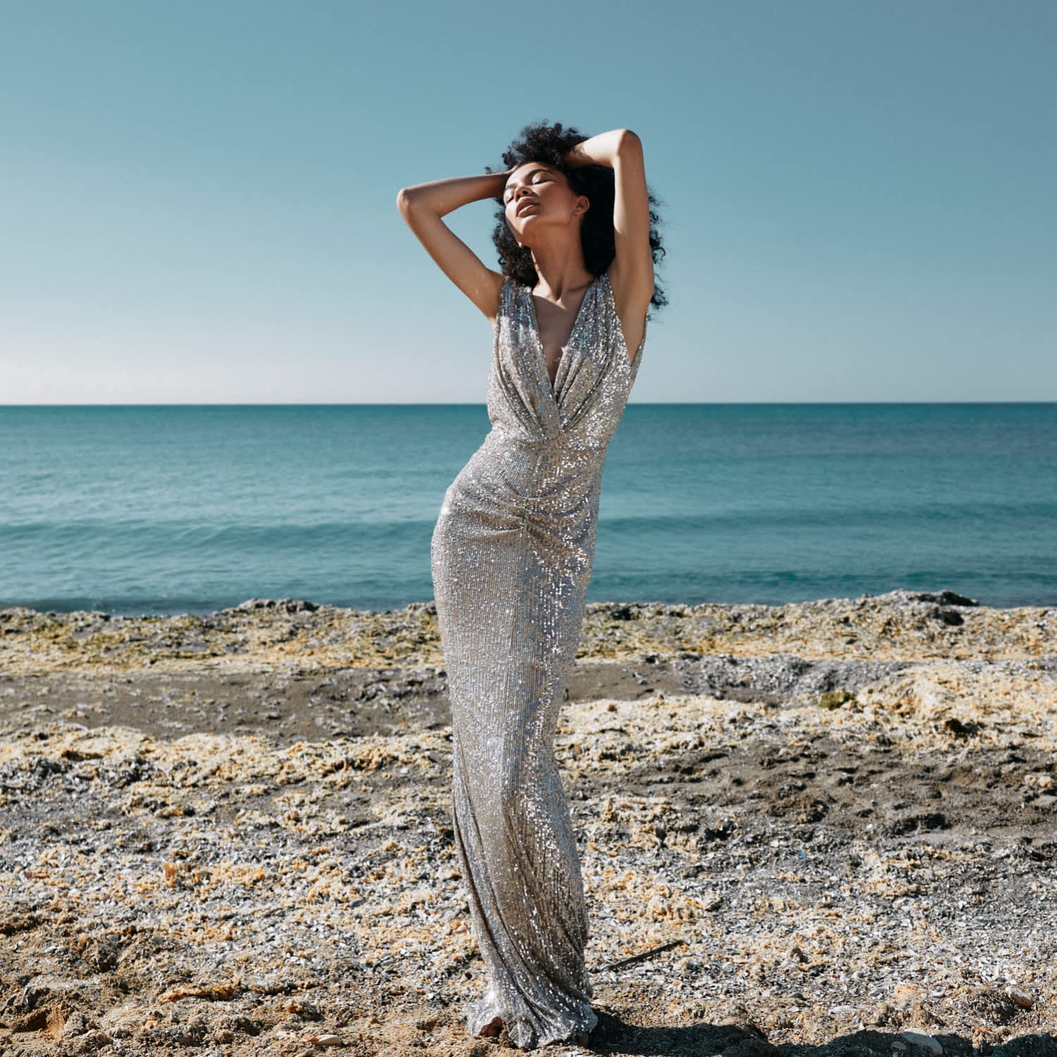 All Eyes On You Silver Sequin Gown LITA COUTURE Wolf Badger Very well made.