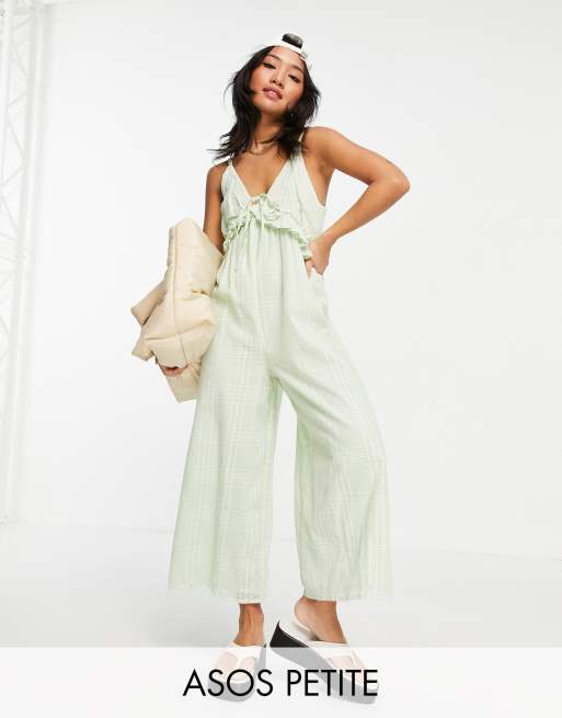 ASOS DESIGN petite v neck frill tie culotte jumpsuit in duck egg blue Very well made.