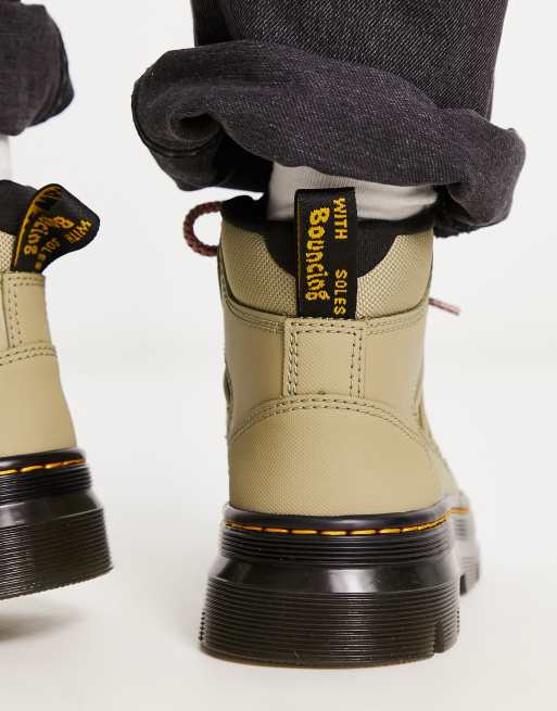 Dr Martens Buwick extra tough boots with pink laces in pale olive Very well made.