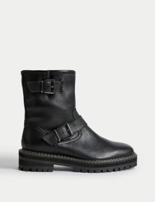 Flat biker ankle boots with buckle details Very well made.