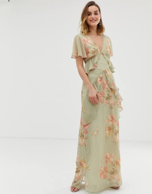 Hope Ivy ruffle floaty maxi dress with open back in sage green floral Very well made.