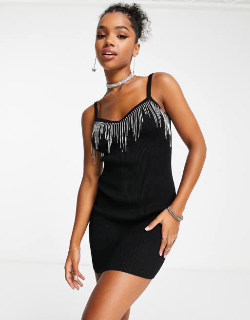 Miss Selfridge diamonte fringe knit mini dress in black ASOS Very well made.