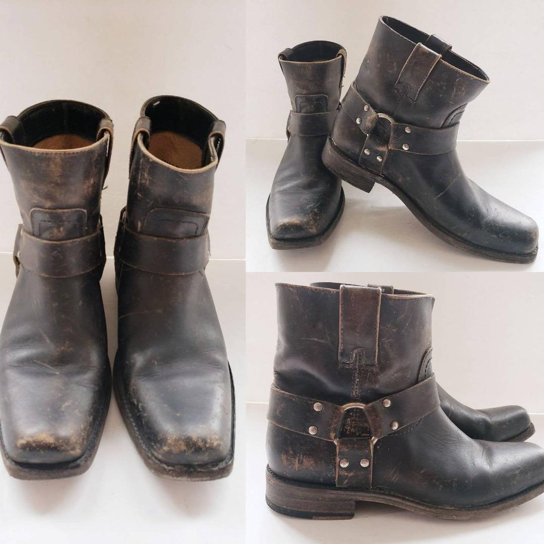 Vintage Frye Harness Ankle Boots Distressed Brown Leather Very well made.