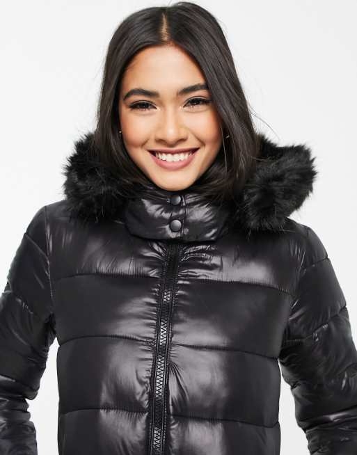 Gianni Feraud classic faux fur trim padded coat in black Very well made.
