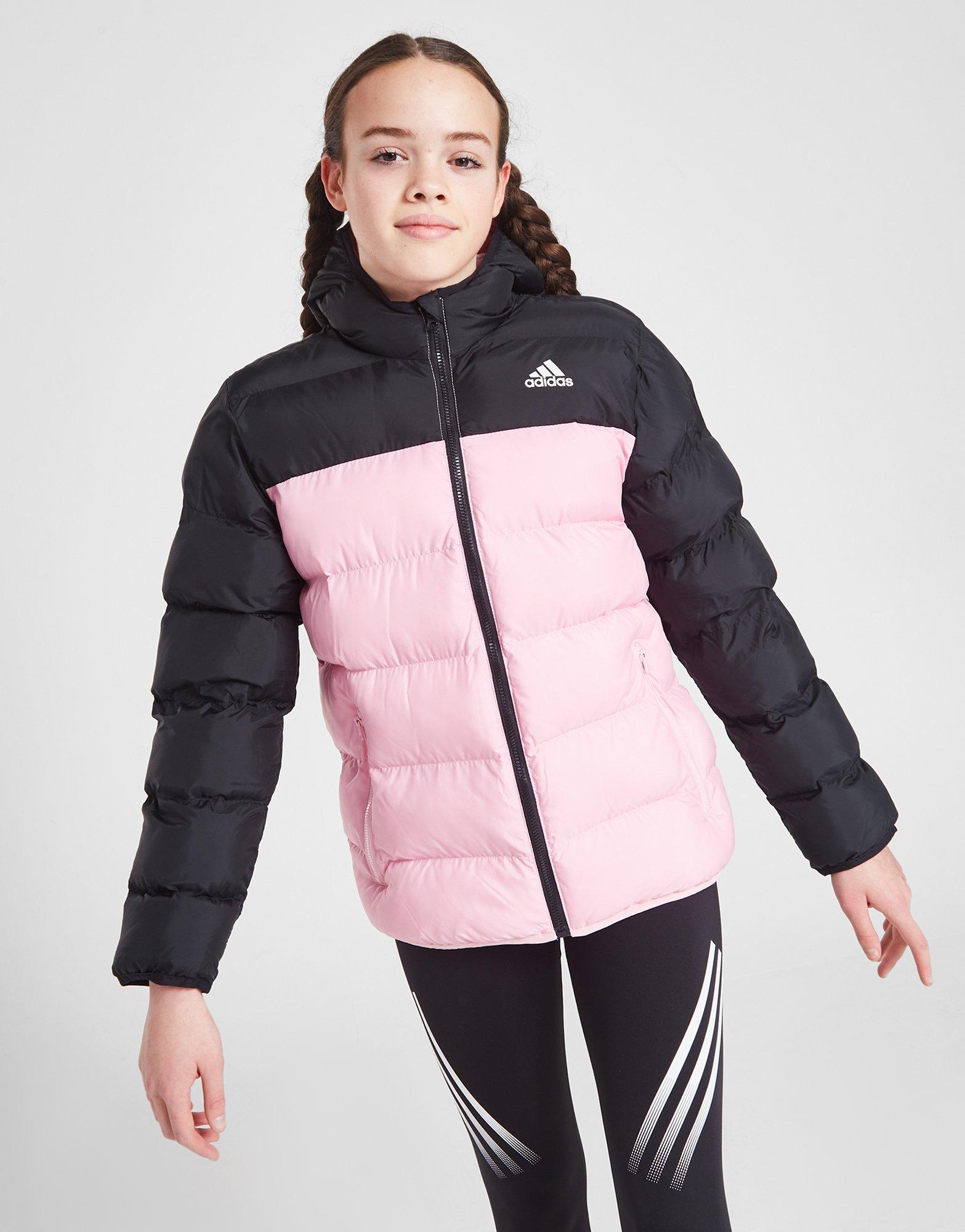 Pink adidas Girls Padded Colour Block Jacket Junior JD Sports UK Very well made.