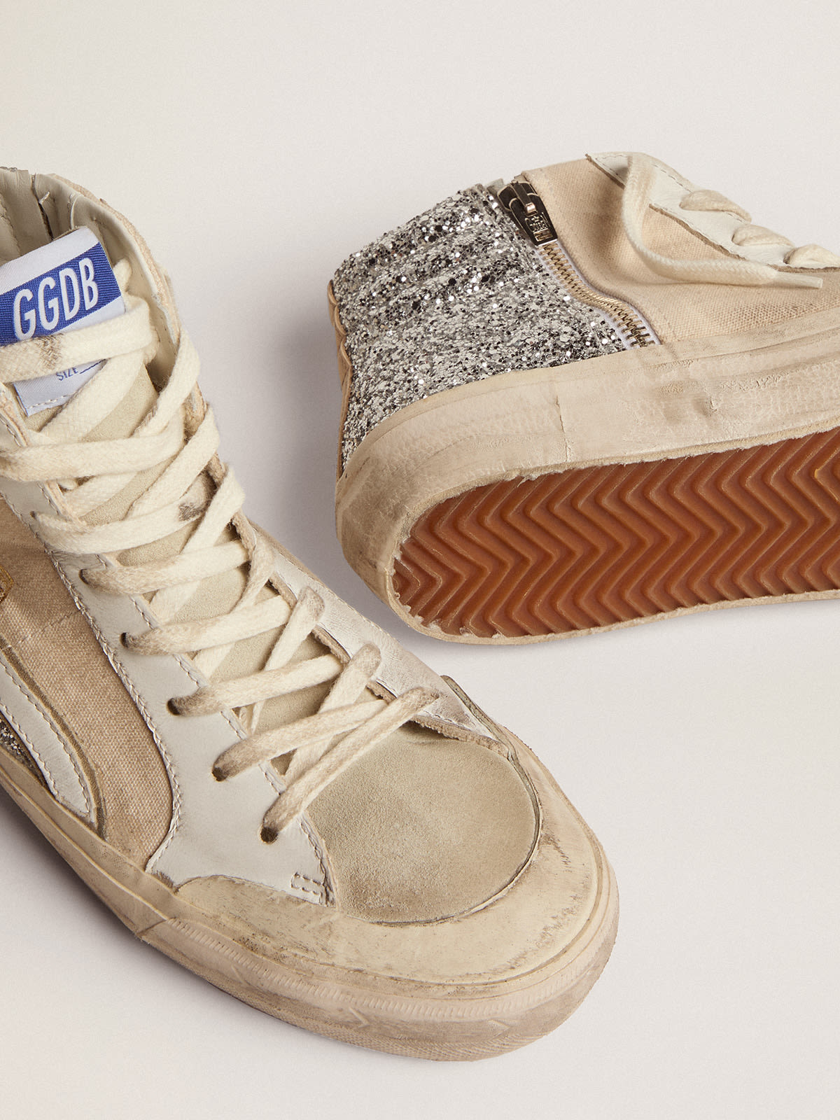 GOLDEN GOOSE High top sneakers SLIDE in ecru green Very well made.