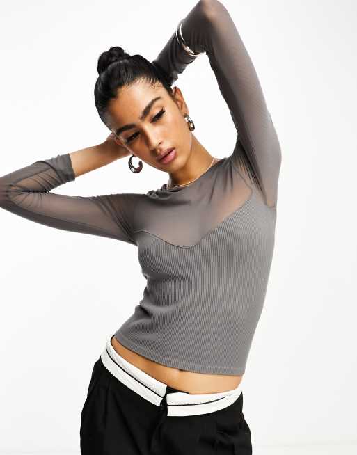 Smokey Grey Mesh Long Sleeve Top Beginning Boutique NZ Very well made.