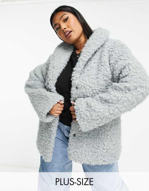 Wednesday s Girl Curve boxy collar detail jacket in grey fluff Very well made.