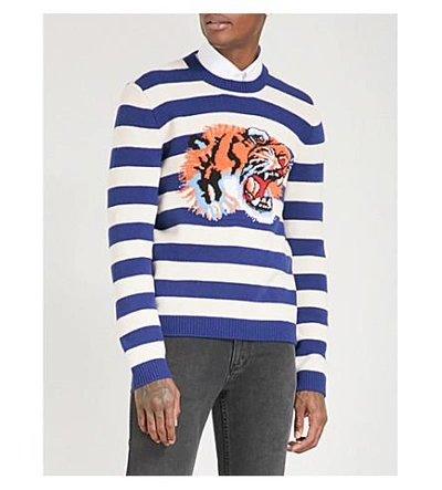 Gucci Striped Wool Sweater With Tiger Head In Blue White ModeSens Very well made.