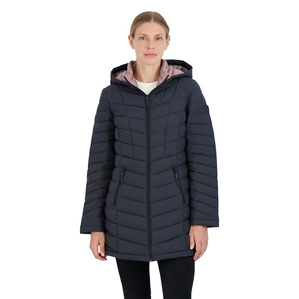 HFX Women s 3 4 Stretch Hooded Puffer Jacket Water Resistant Very well made.