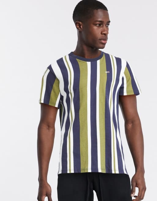 Tommy Jeans vertical stripe t shirt in khaki multi Very well made.