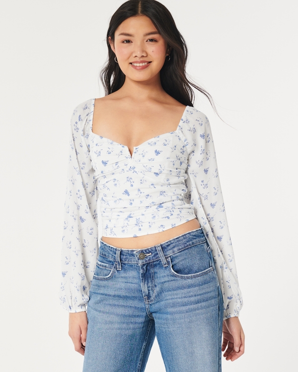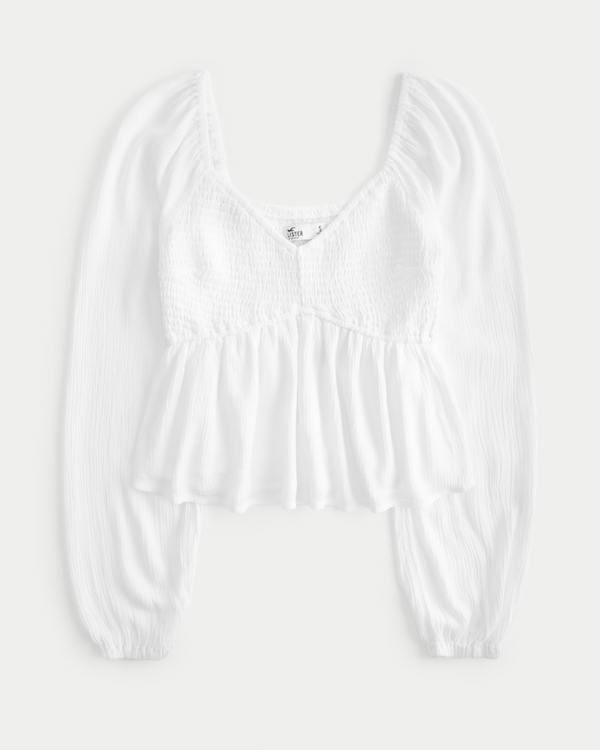 Hollister long sleeve babydoll blouse in white Very well made.