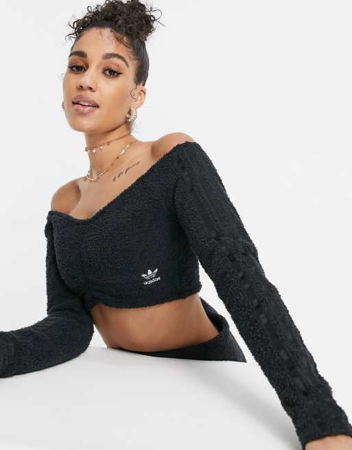 adidas Originals Relaxed Risqu Pluizige gebreide crop top met lange mouwen en rimpeleffect in zwart Very well made.