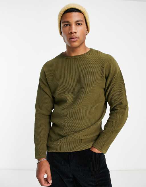 Selected Homme ribbed crew neck knitted jumper in khaki Very well made.