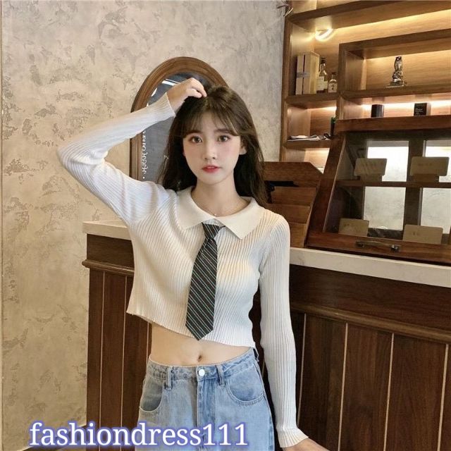korean girl fashion crop top w collar Very well made.