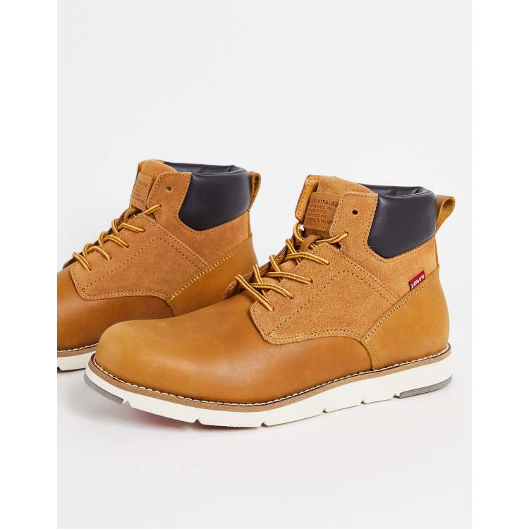 Levi s Jax Plus suede mix boot with red tab in tan ASOS Very well made.