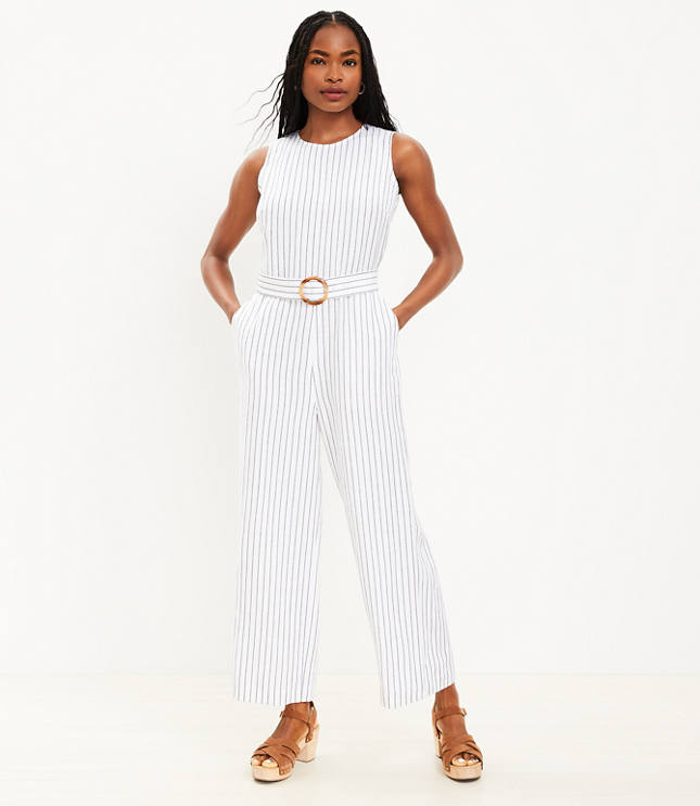 Stripe Linen Blend Belted Sleeveless Jumpsuit Very well made.