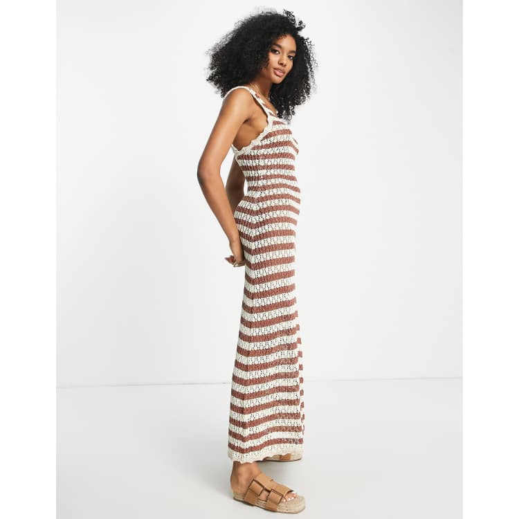 Mango crochet stripe midi dress in cream and rust Very well made.