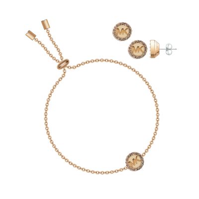Michael Kors Fashion Rose Gold Brass Bracelet and Earring Set Very well made.
