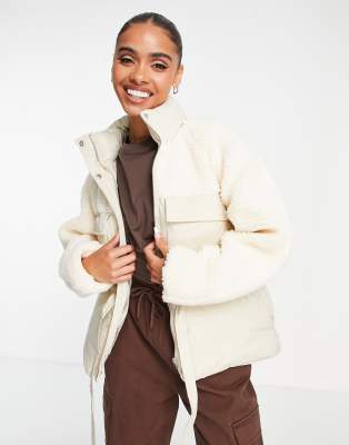 Missguided Borg Mix Puffer Jacket In Cream white ModeSens Very well made.