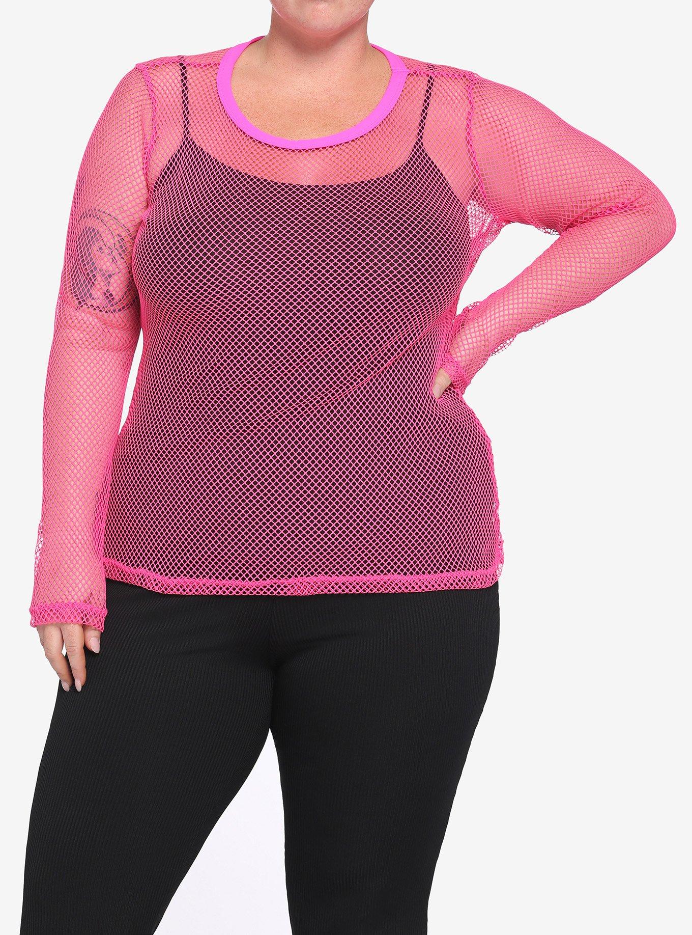 Neon Pink Stretchy Fishnet Girls Long Sleeve Top Plus Size Very well made.
