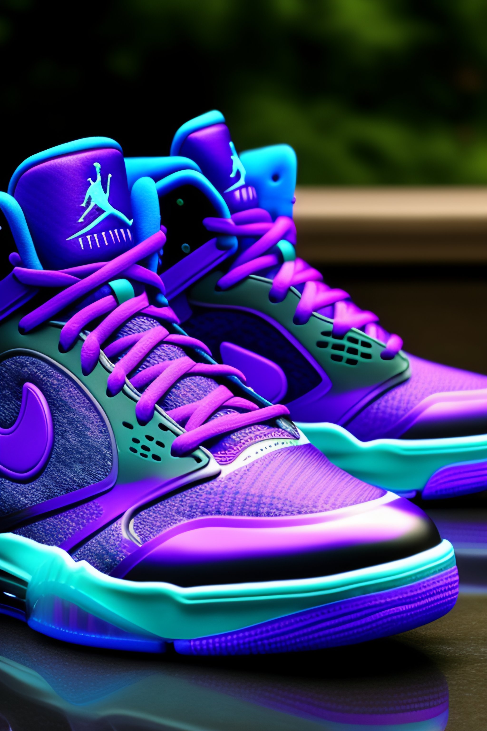 White purple and black nike air jordan high sneakers with neon Very well made.