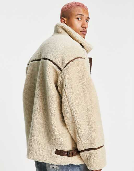 ASOS DESIGN oversized sherpa jacket with contrast taping in beige Very well made.