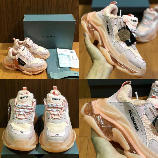 Balenciaga Triple S Clear Sole Peach Shoes For Girls Shopee Very well made.